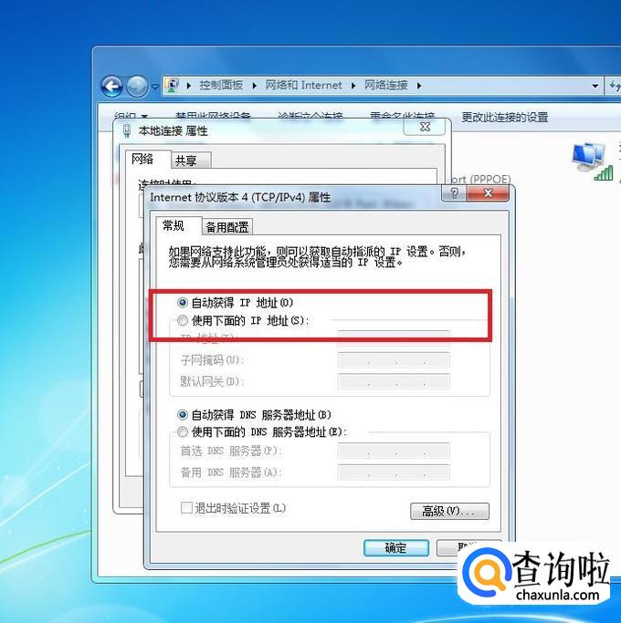在弹框内有两个选项,“自动获得IP地址”是依靠路由器或网络猫来分配Ip地址。“使用下面的Ip地址”是依靠我们指定的Ip地址来上网,也就是常说的静态Ip地址。选择“使用下面的Ip地址”,并在各项指标中填入对应的数据。