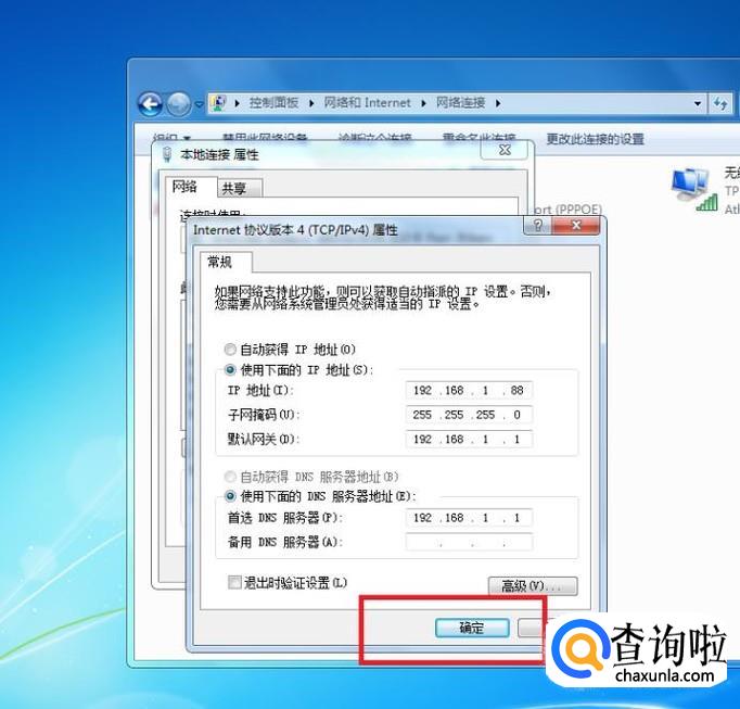 设置完所有的数据后,点击“确定”来确认我们的修改。这样静态IP地址就设置好啦!