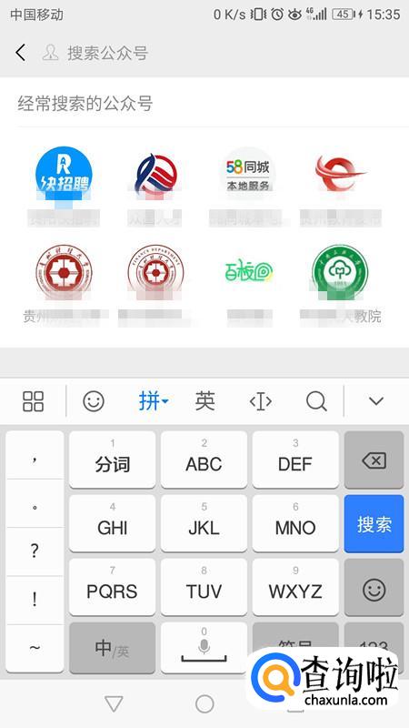 打开自己的微信找到搜索框,点击搜索公号。
