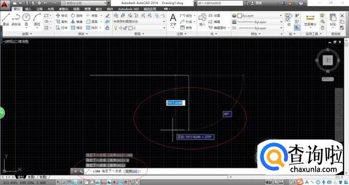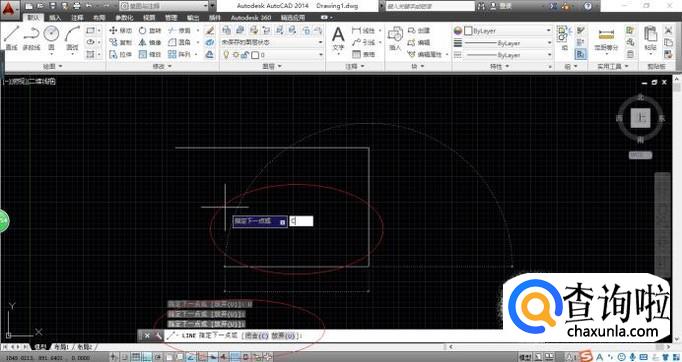 如图所示,命令窗口显示"LINE 指定下一个点或[放弃(U)]"。沿Y轴移动距离比X轴移动距离大,则画竖直线。