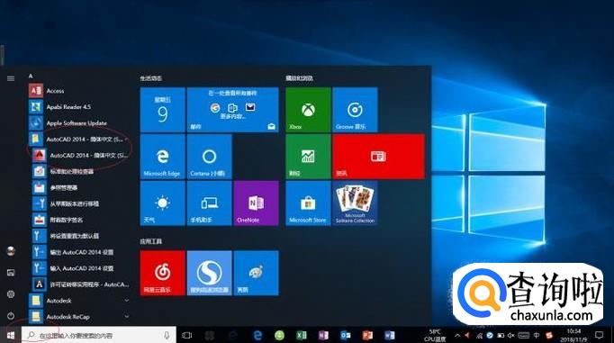 如图所示,展开左侧树形目录结构。点击"AutoCAD 2014 - 简体中文(Simplified Chinese)"项,用于打开"AutoCAD 2014"应用程序。