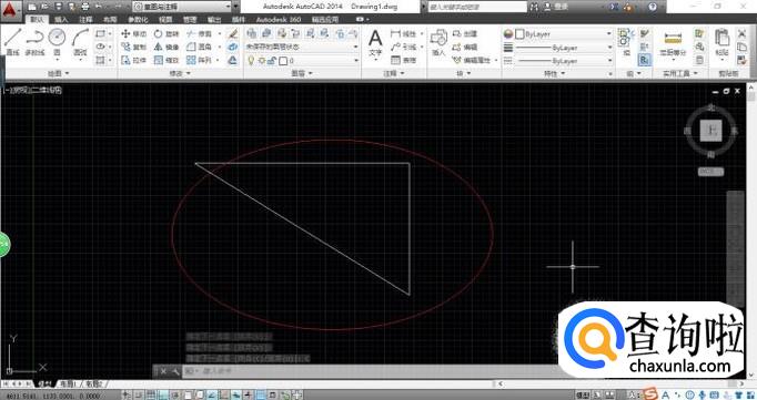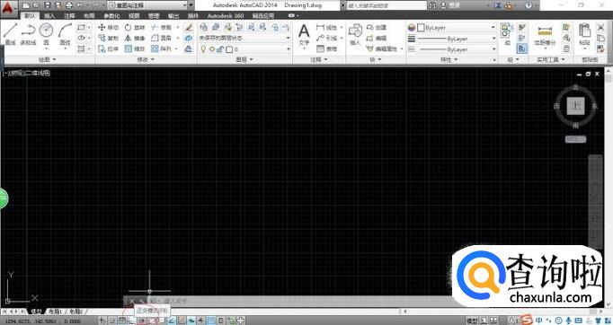 唤出"AutoCAD 2014"程序窗口,如图所示。点击状态栏"正交模式"按钮开启此模式,亦可在命令窗口输入"ORTHO"命令。