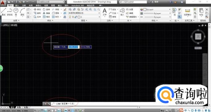 命令窗口显示"LINE 指定第一个点",如图所示。单击鼠标左键拾取第一个点,沿X轴移动距离比Y轴方向大则画水平线。