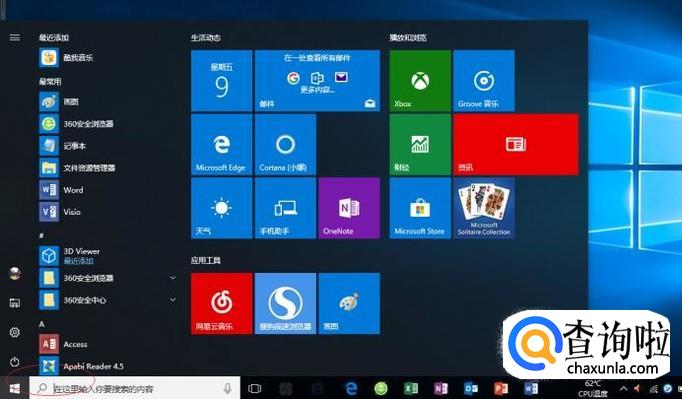 启动Windows 10操作系统,如图所示。点击任务栏"开始"按钮,用于弹出开始菜单。