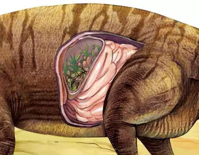 植物是由纤维素和木质素构成的,这些坚韧物质必须先被分解处理后,才能被胃消化。因此草食性恐龙吃下坚硬的石头,研磨食物,帮助胃进行消化。