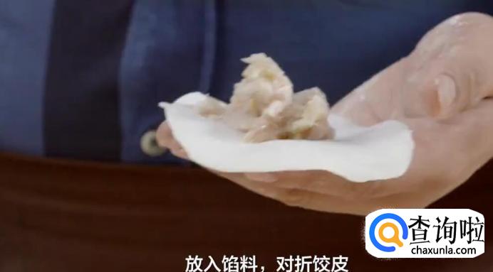 成为皱褶,最后用虎口掐住,封口,虾饺就包好了。