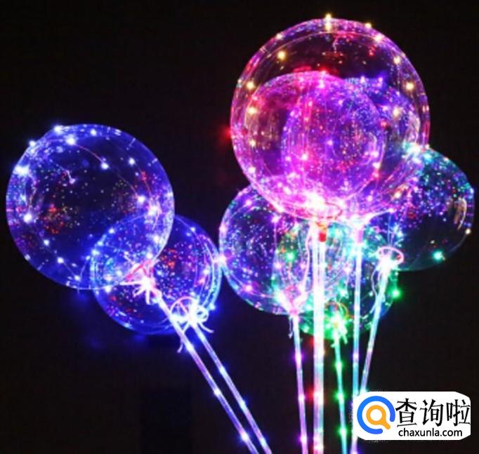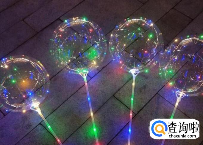 网红气球表面粘有发光的LED 灯,绑在一根透明的塑料管上,塑料管底部装有电池,气球内部充有氢气,充的是氢气,一碰到火星,就会爆燃。
