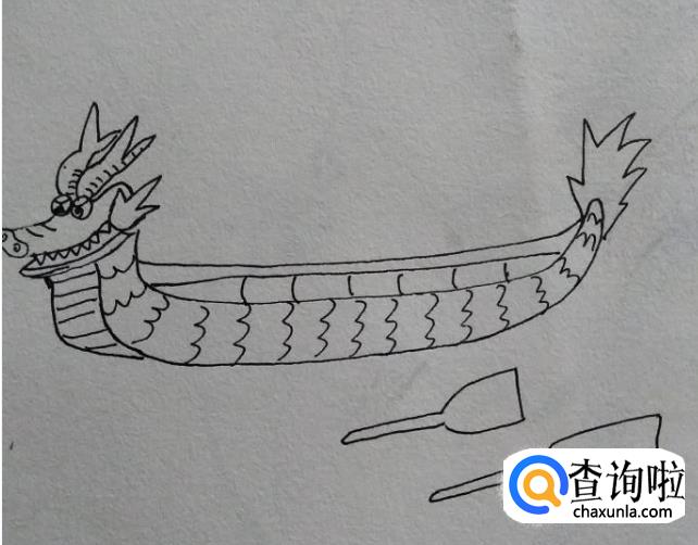 然后我们画出两个桨,这样端午节龙舟就画好了。