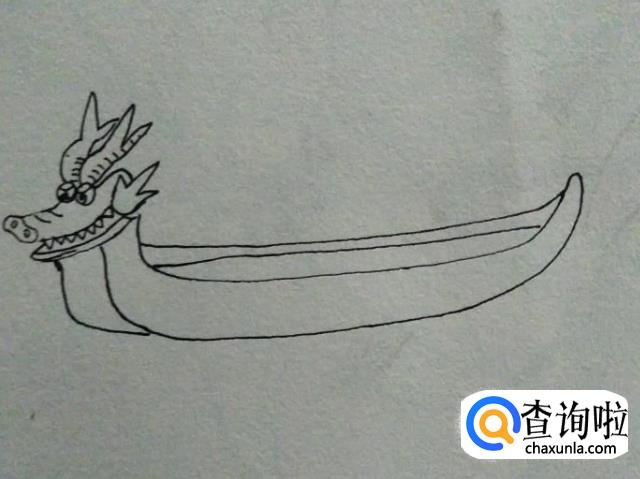 然后我们画出龙舟的船体部分,如下图,只用几根类似于平行的线勾勒即可。