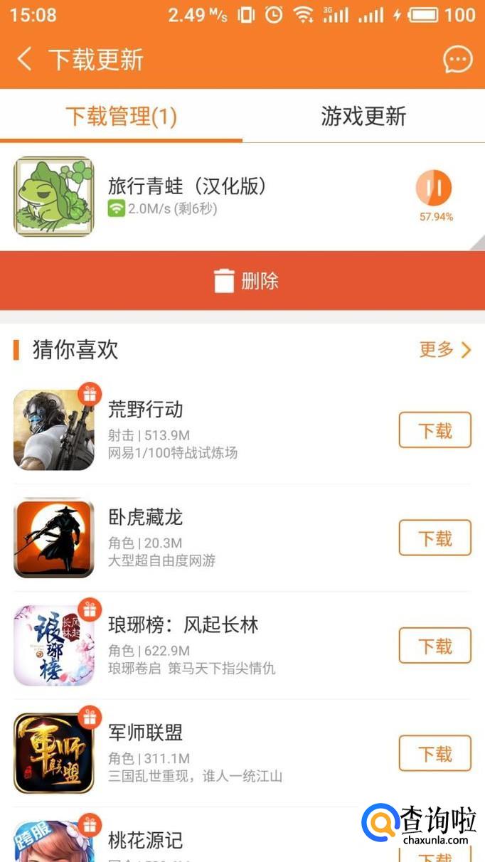 如果下载过程中不想下载了的话,在下载管理中点击应用选择“删除”即可。
