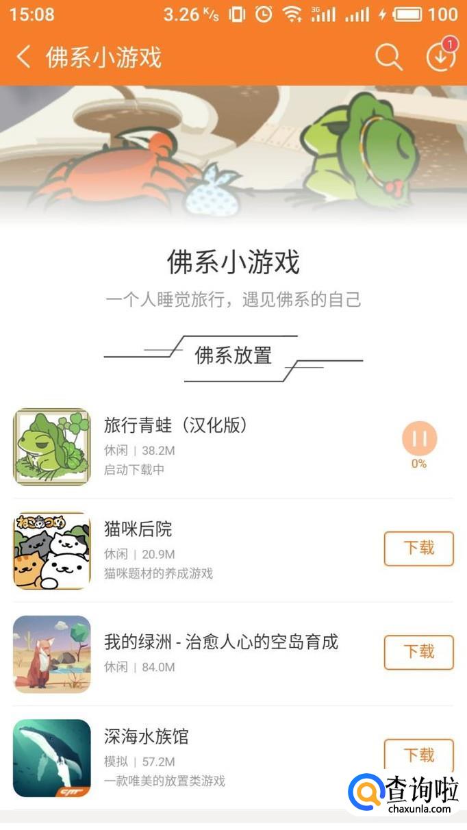 进入佛系小游戏之后我们即可看到汉化版的旅行青蛙,点击进行下载即可。