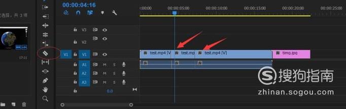 选择拖拽工具,将视频整体向后方拉拽,将图片素材拖到缺口处