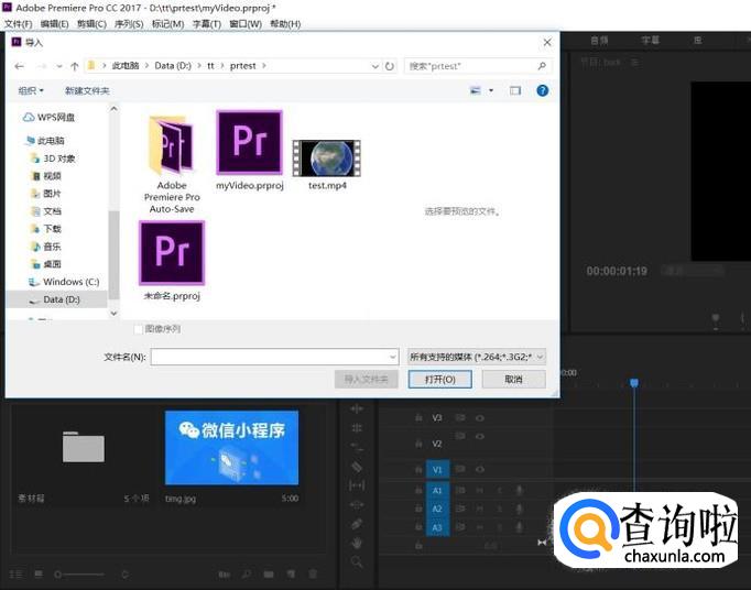 在打开的项目中,找到素材区,导入准备好的视频素材和图片素材