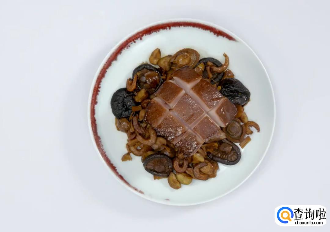 猪五花肉 1000克、生姜 3片、八角 2颗、桂皮 1个、香叶 5片、鲍鱼干、虾干、香菇干、瑶柱、栗子、老抽、糖、盐、蚝油、水 适量