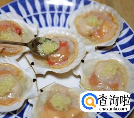 锅里加清水放上蒸格,烧开水之后把扇贝连这盘子放进去蒸熟,蒸熟之后调一些姜醋汁倒在上面就可以了。
