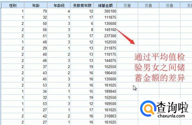 然后当数据导入进来以后我们就需要通过平均值校验男女之间储蓄金额的差异,如下图所示
