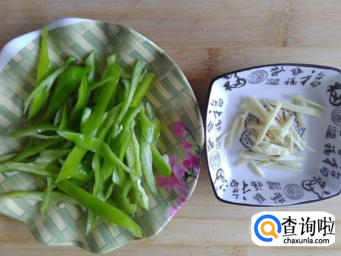 把青椒、姜切成丝。