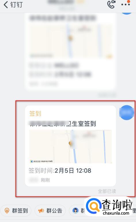 这样群组成员的签到信息就可以展示在群里了。