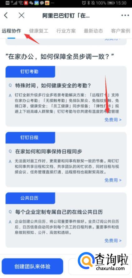 在弹出的页面中,选择如图1所示的“免费用”按钮,进入下一个页面后,可以看到群签到功能,点击“免费用”,如图2所示。