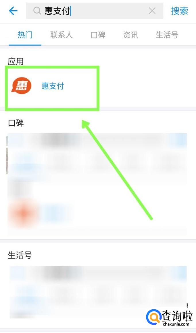 打开支付宝,在支付宝页面最上面的搜索栏里搜索“惠生活”,找到应用“惠生活“,点击进入。