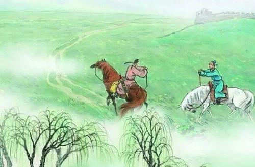 远处的春草侵占了古道,阳光下的绿色连着荒城。