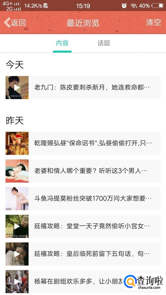 最后,点击右上角的“清空”即可删除最近的浏览记录。