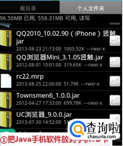 将即将安装的Java手机软件放到你的安卓手机SD卡中。