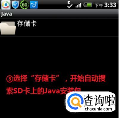 选择“存储卡”,开始自动搜索SD卡上的Java安装包。