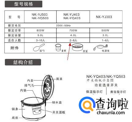 使用之前,应检查使用电源是否符合220V交流电,380V交流电不能接入电饭锅,否则会将电饭锅烧坏。电压太低会延长煮饭时间,甚至不能煮饭,因此用户须注意这一点。