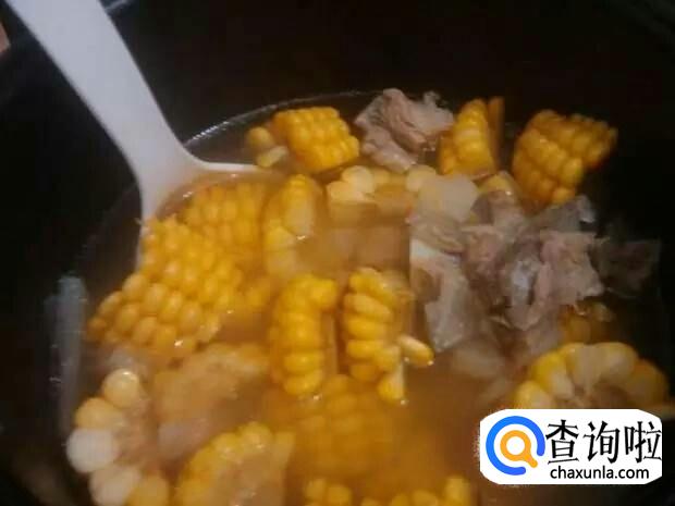 将排骨和玉米剁成小块。倒入电饭煲中,加入水,没过食材。按下电饭煲上的煮粥键。待电饭煲跳至保温,加入少许盐即可。