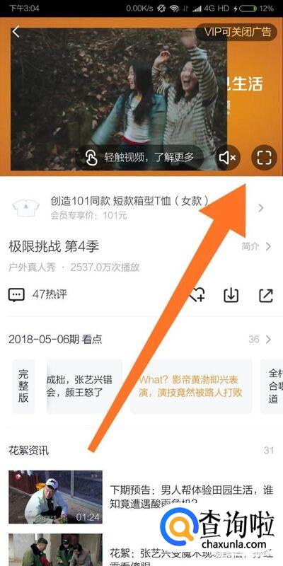 待广告播放完毕后,点击播放界面右下方的全屏播放按钮,进入全屏播放模式。