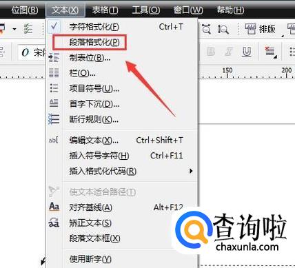 选择输入的文字,在菜单里找到文字选项,点击该选项在其下拉菜单那里找到段落格式化选项,如图所示: