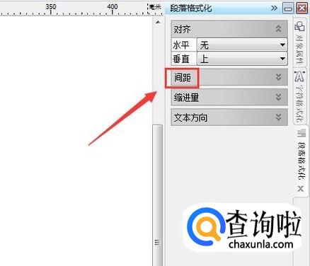 点击段落格式化选项在右侧的面板里找到间距选项,如图所示: