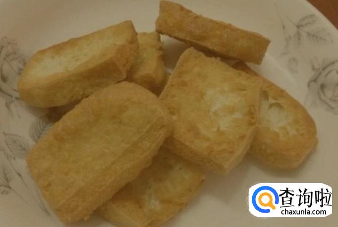 将豆腐切成片,放入锅中炸至两面呈金黄色。