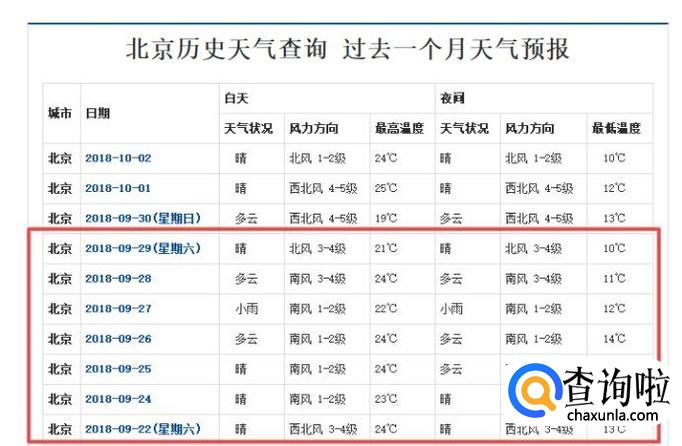 结果如图所示,这样我们就查看到了历史天气情况了,相信大家现在都会查询了。