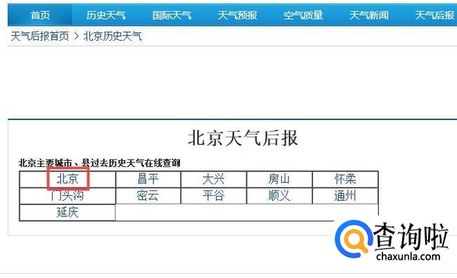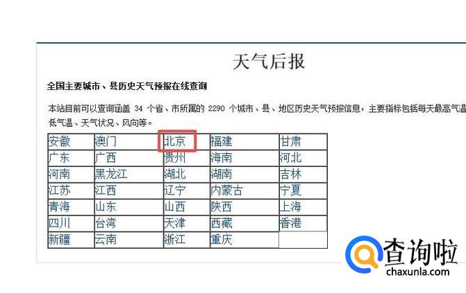 弹出的界面,我们点击一个我们想要查询的城市,此处我们点击北京;