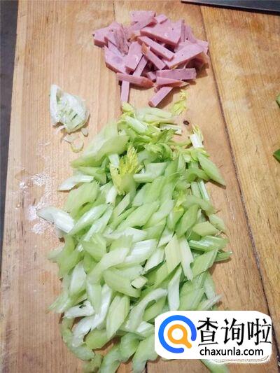 芹菜、火腿、花生油、酱油、盐、葱