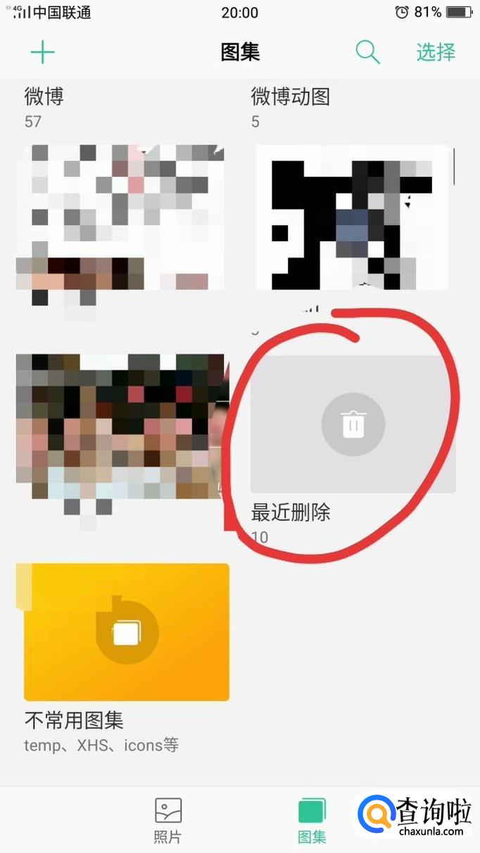 点击“图集”之后进入你的图集,找到“最近删除”选项,如下图