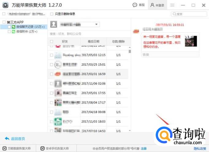 需要注意的是,当我们的微信聊天记录卸载之后,数据是很难被恢复,因为数据容易覆盖和损坏,但是不排除没有被覆盖的聊天记录,所以建议用上面的方法免费扫描预览手机上的数据,扫描预览到的聊天记录就说明可以恢复的,反之无法恢复。