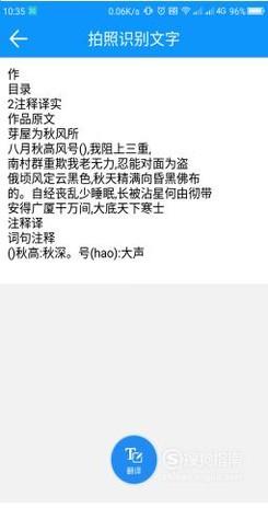 茅屋为秋风所破歌识别出来啦,你们可以自己去试下,还可以对文字进行翻译