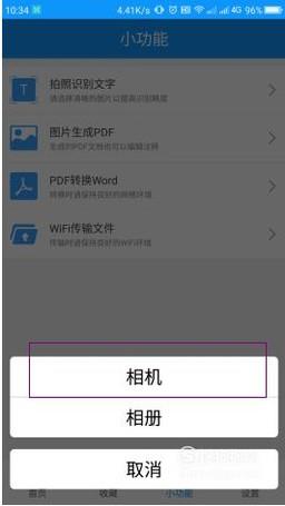 这里是新增的小功能,我们选择拍照识别文字中的相机