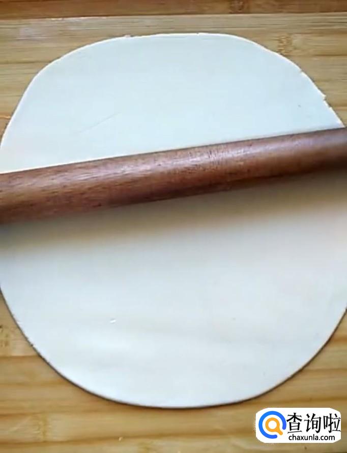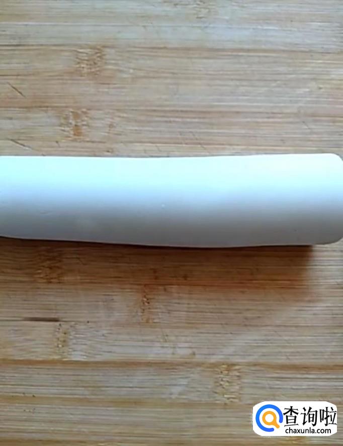 接着我们分别把两个面团用擀面杖擀成大薄片,擀好以后将红糖的面团放在牛奶的面团上面卷起来