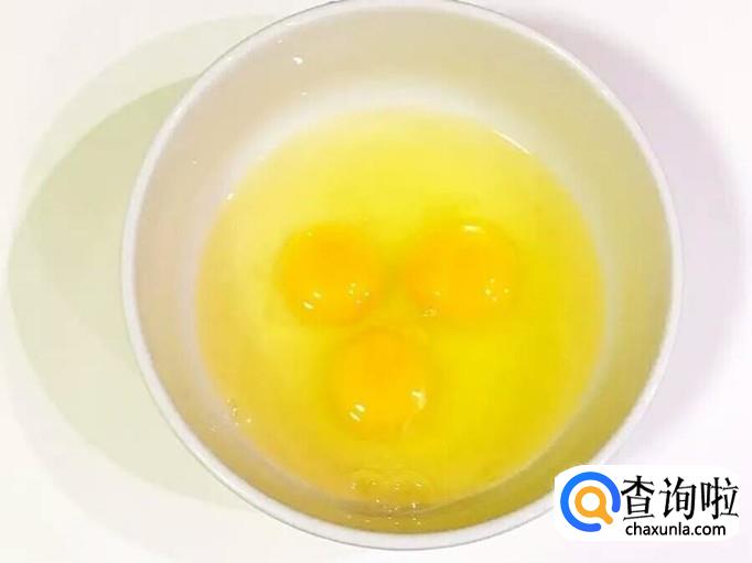 在碗中将鸡蛋打散,打成蛋液。备用。