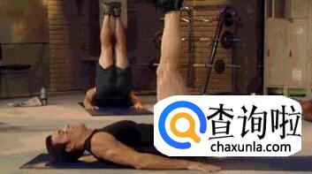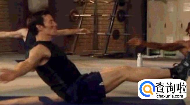 这是一个胸廓和骨盆相互靠近的动作,上半身动作幅度比较小,所以下腹部负荷会比较大。整组动作脚尽量不要着地,抬起双手,双臂张开,伸展,胸部挺直。