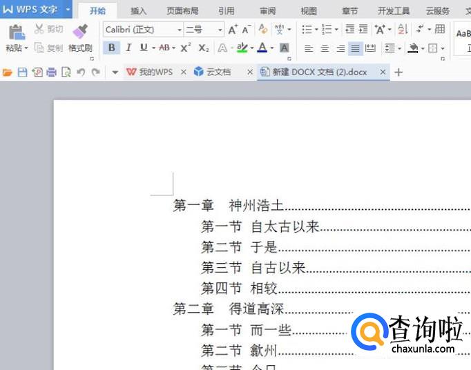 首先,我们打开一篇带目录的WPS文档来演示。