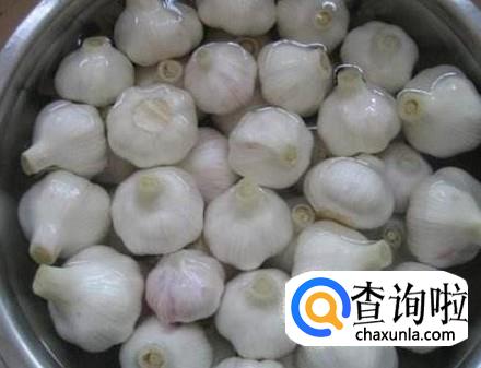 将大蒜剥去最外面的干皮,只留里面两层嫩皮,这样腌制时容易入味。