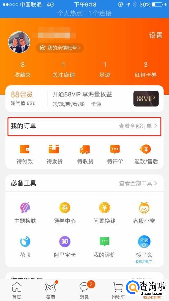 点击“我的淘宝”,找到我的订单,点击进入。