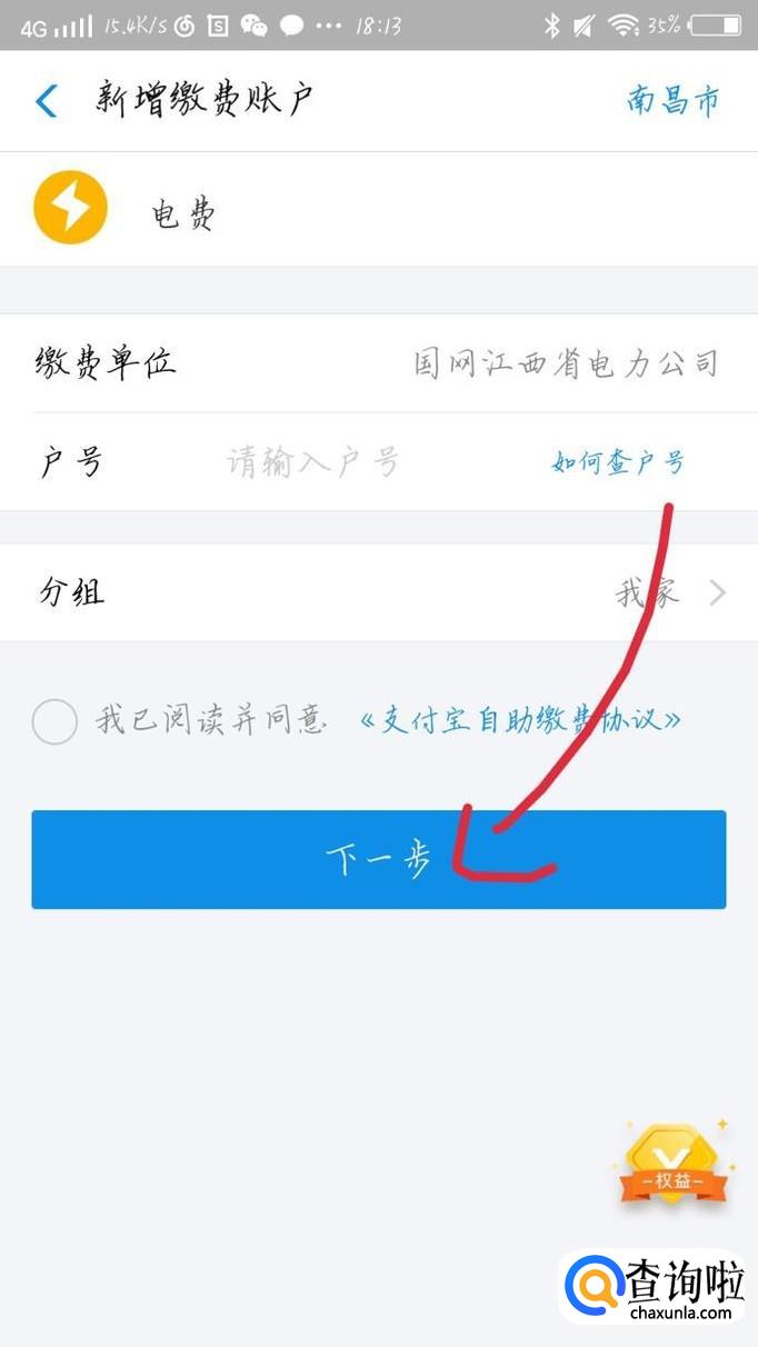 你会看到出现一个新的界面,输入你的户号,点击“下一步”选项,如图1箭头所示。这样你就可以网上缴费了。