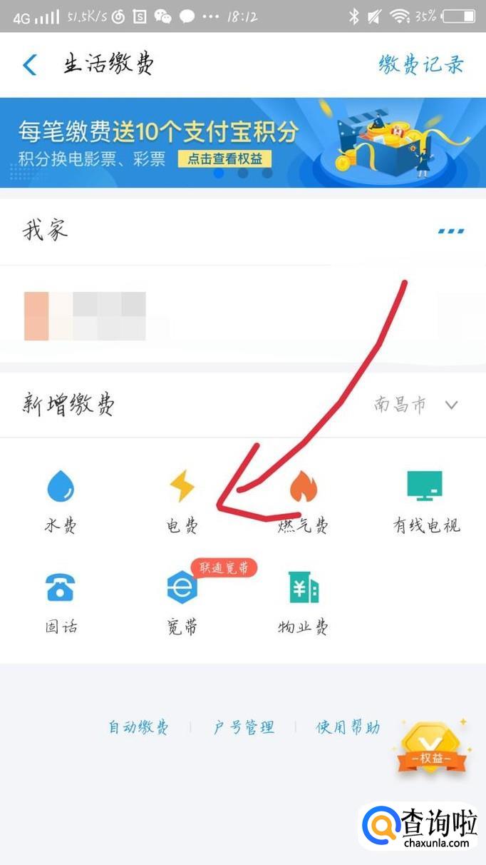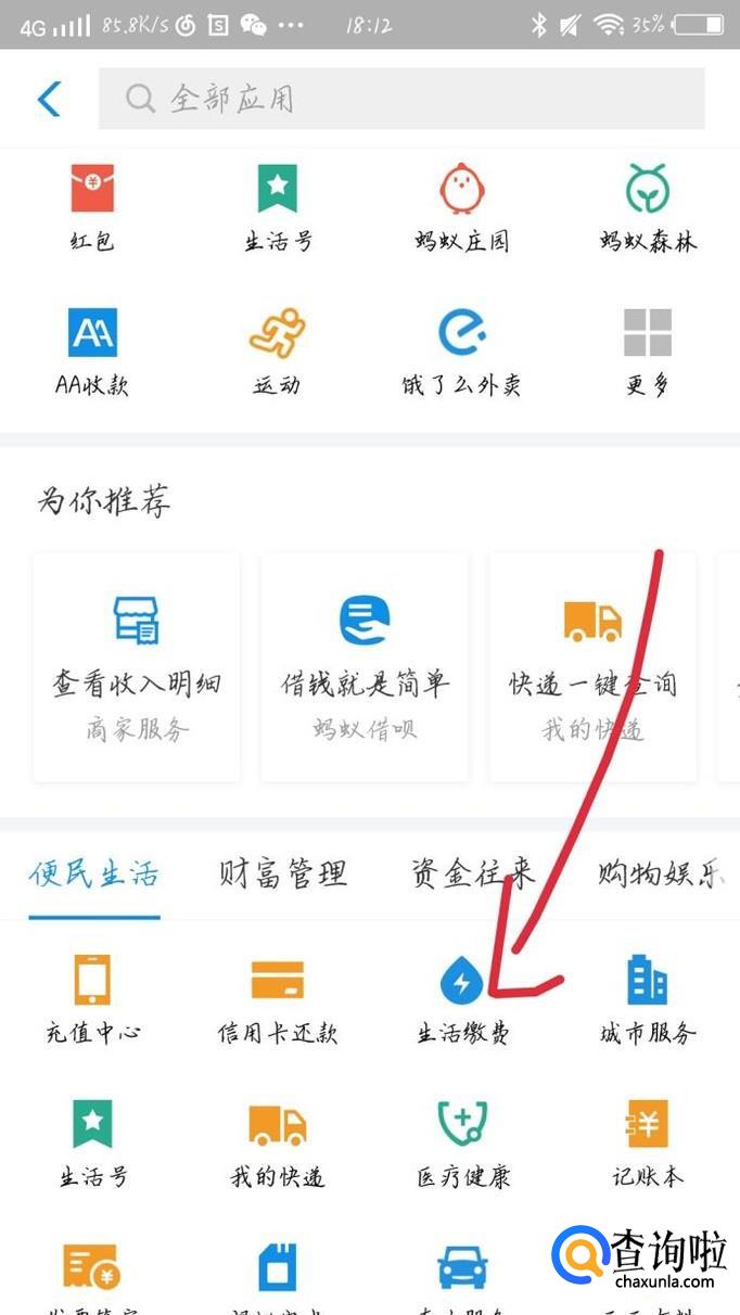 点击“生活缴费”选项,如图1箭头所示。你会看到出现一个新的界面,点击“电费”选项,如图2箭头所示。
