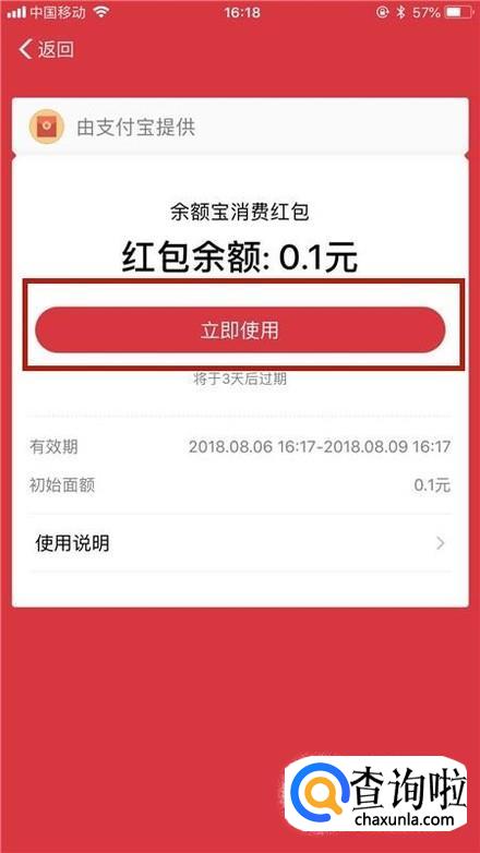 然后用我们的手机扫描商家的二维码,如下图所示。通过以上操作,我们就能够使用未领取的支付宝红包了。